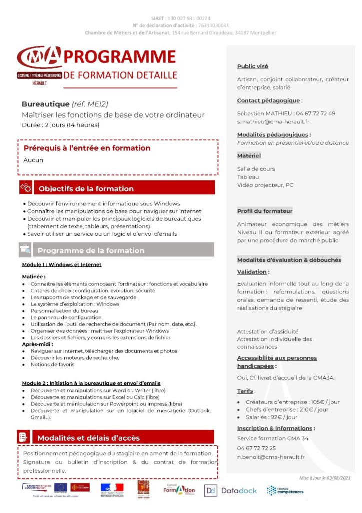 Pour toutes les formalités d’inscription, veuillez contacter le service formation ou consulter le programme de formation détaillé ci-contre.